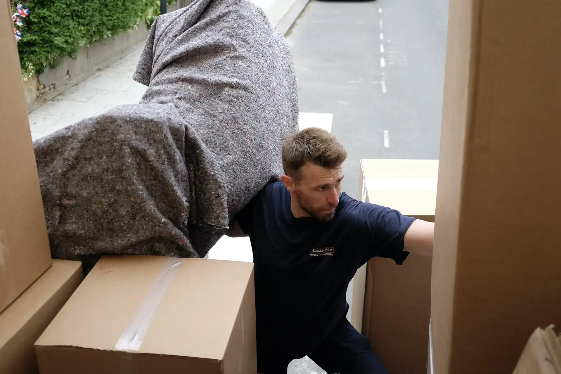 The move required the careful handling of large furniture items, boxed personal effects, and fragile belongings. Transporting these items from South Buckingham into West London presented additional logistical considerations, including traffic management and limited parking availability. With durable cartons and reliable protective materials, the removals team could pack efficiently, stack boxes securely within the vehicle, and reduce the risk of shifting during transit.